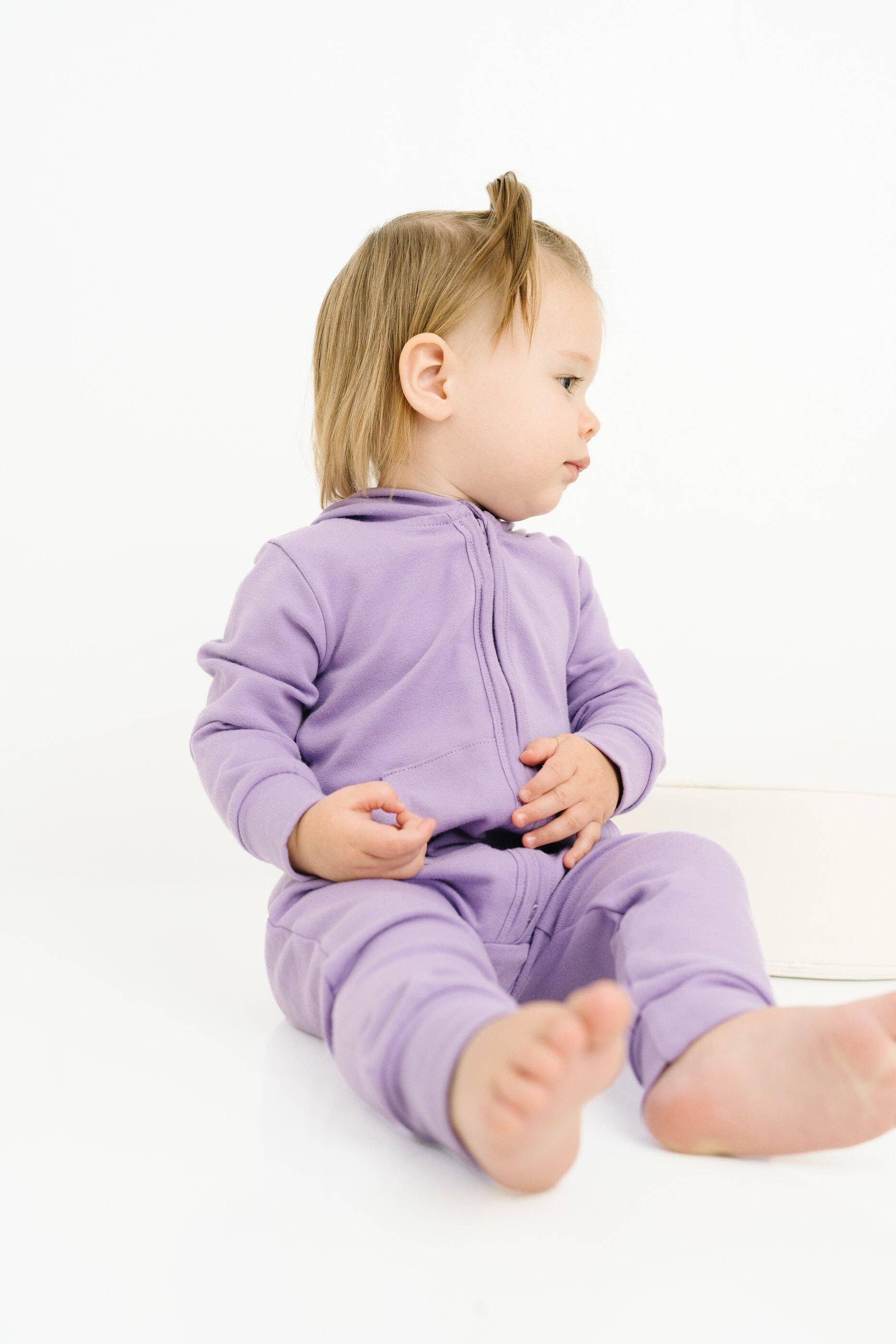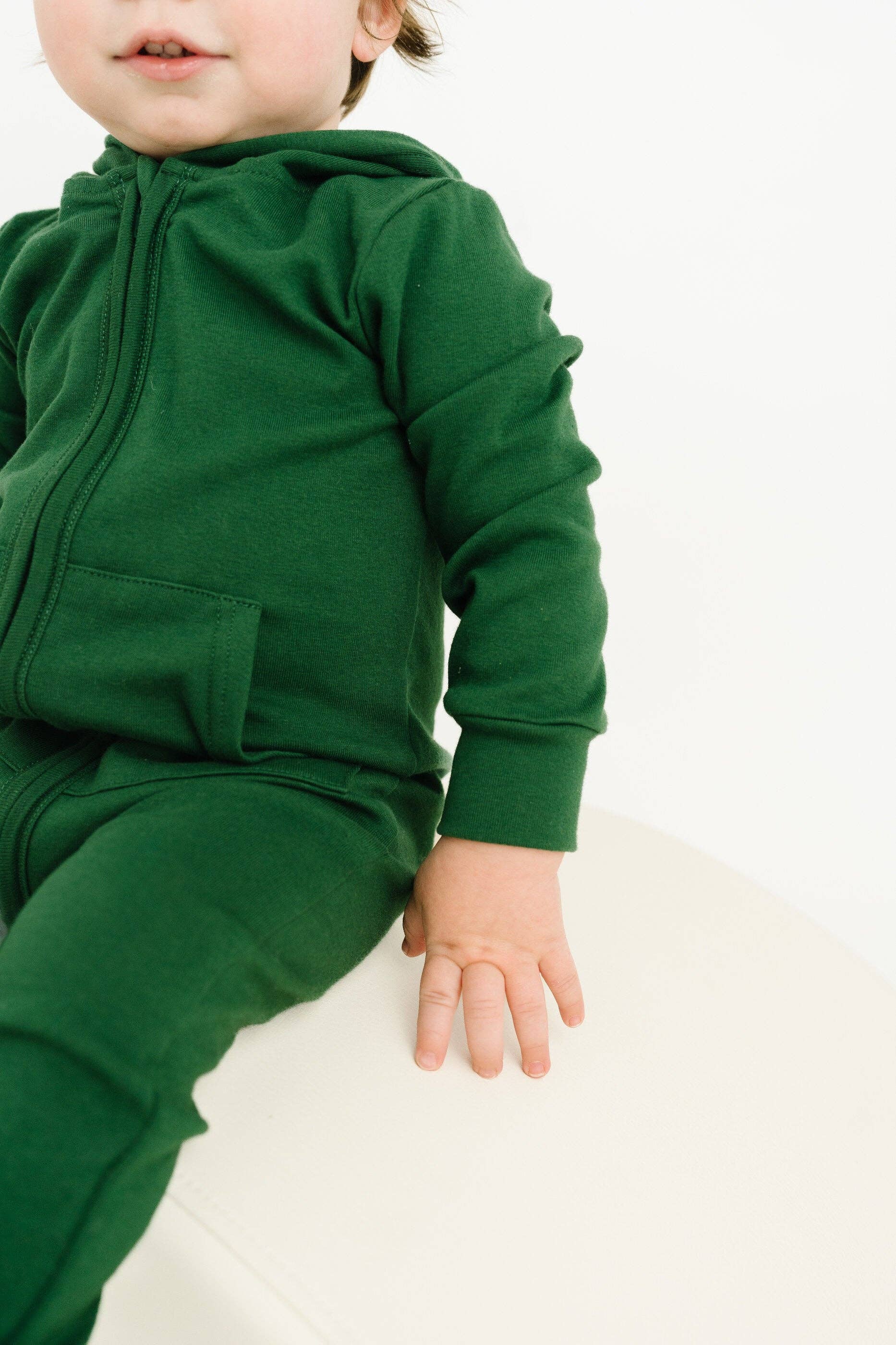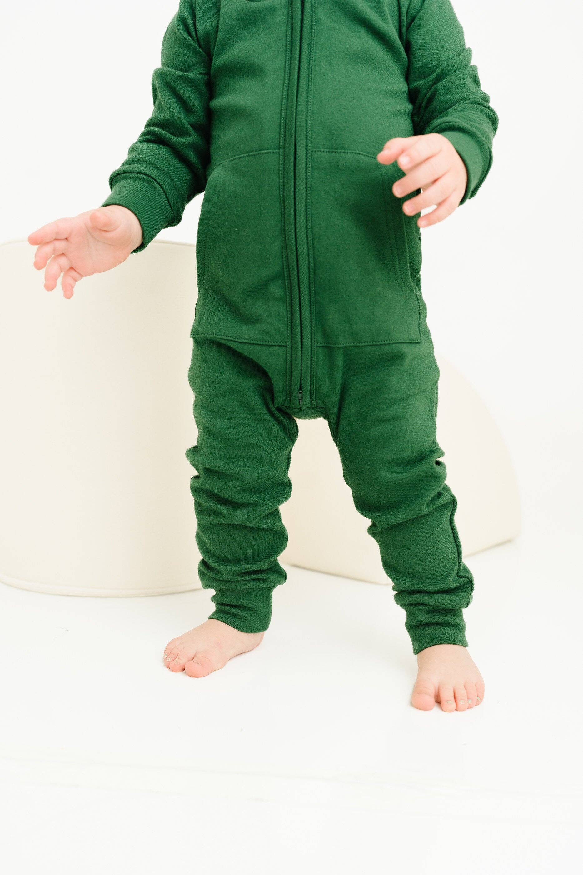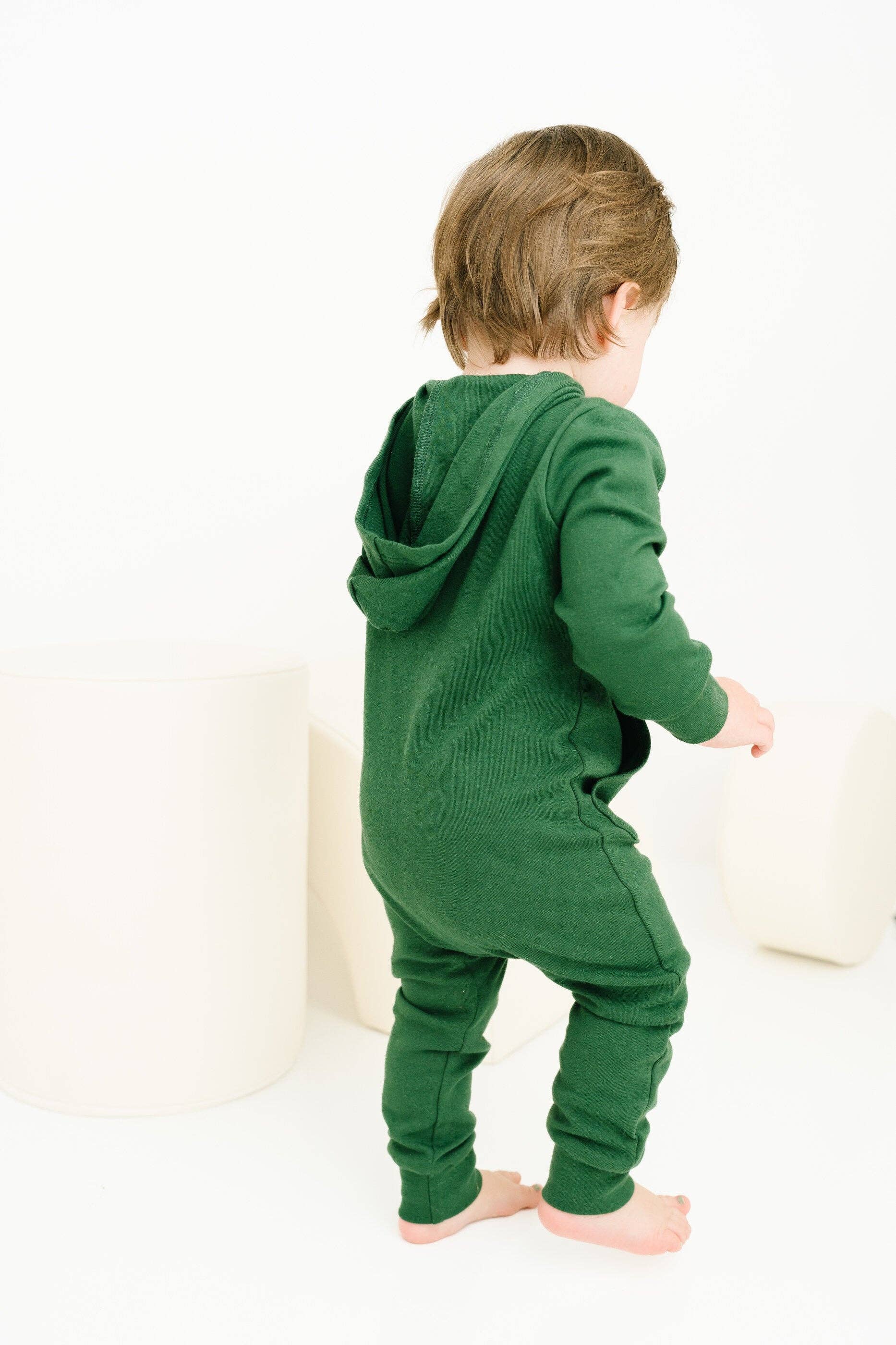 Grab this cute and fun double zippered one piece sweatshirt romper for the littlest ones in your life. Babies and toddlers alike will love the soft and stretchy fabric. Fully functional pockets add to the beauty of this outfit. Plus the hood with save you in a pinch when the wind, rain or cold air hits. The double zipper makes for easy diaper changes. No loose cords or snaps for safety.