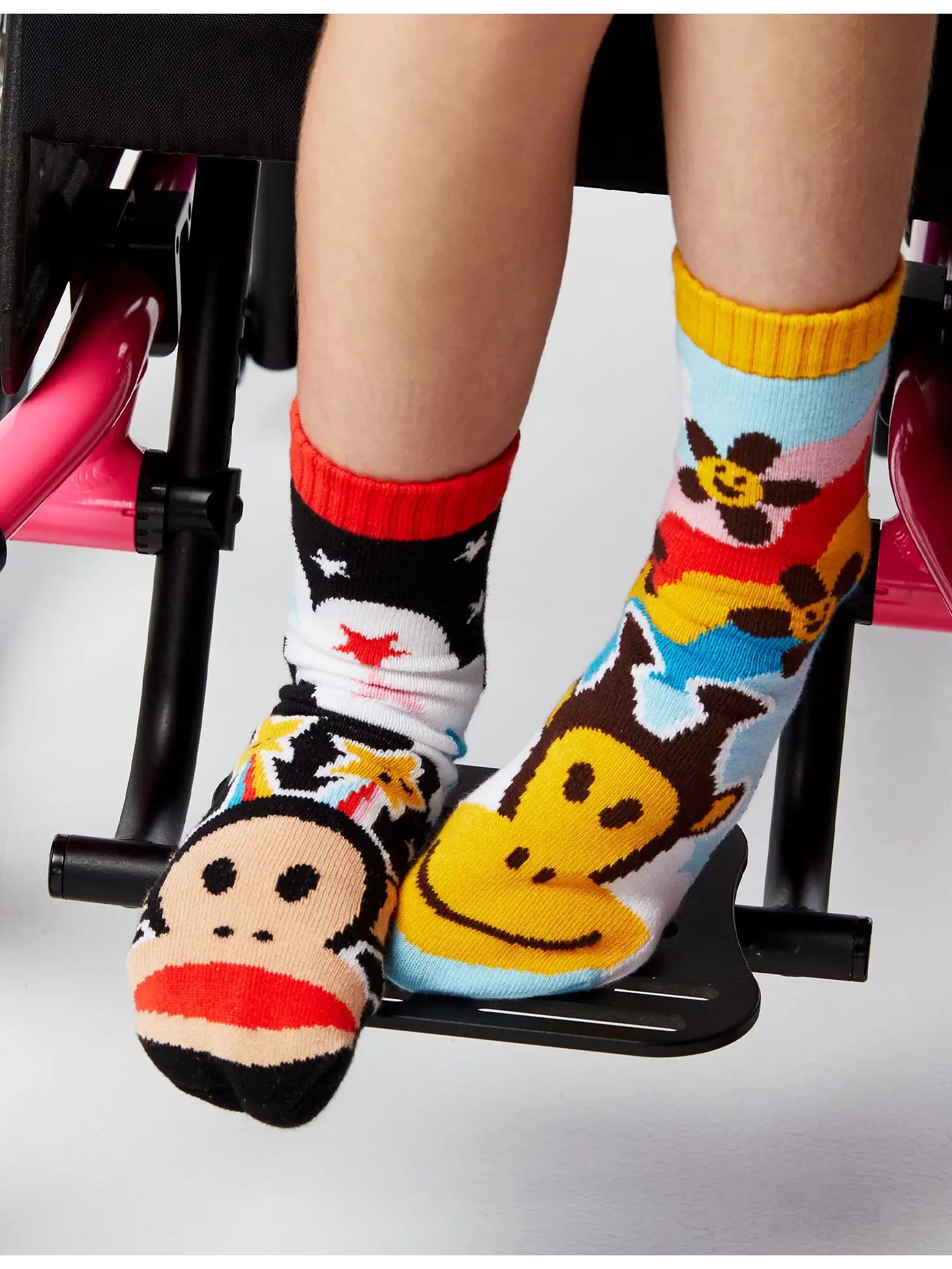 These tastefully mismatched socks feature 90s nostalgia, with Julius and Clancy! The rainbow details makes this set, perfect for spring and ready to gift or for Easter basket stuffers. So much sweeter than candy and loads of fun! Designed by Paul Frank, featuring the iconic Julius the Monkey and one of his best friends!