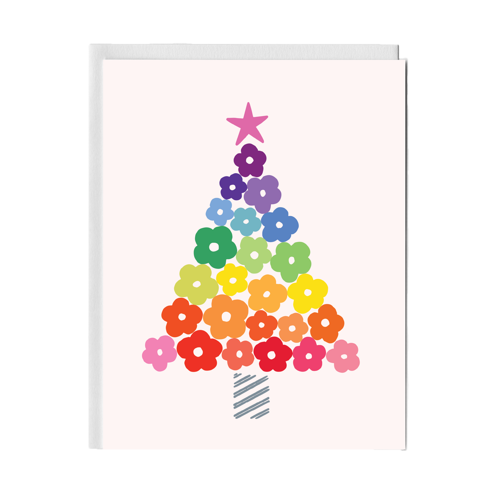 Modern and graphic floral Christmas tree with bright rainbow colors that sing.