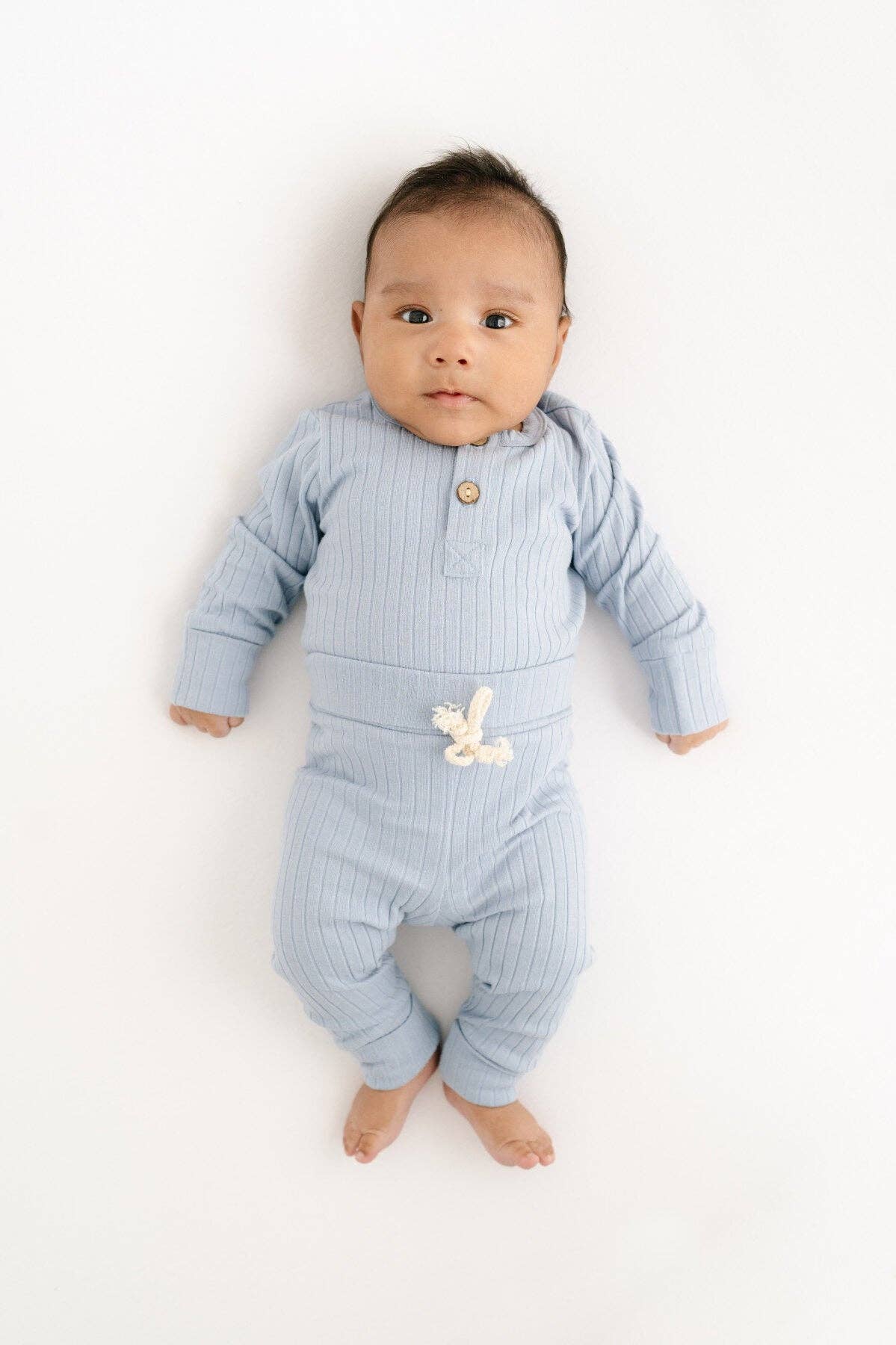 Your little one will love this long sleeved henley set. The built in fold over cuffs will keep them comfy and cozy all season, and continue to fit as they grow. Featuring a crew neck and long sleeves. The elastic free, fold over waistband provides enough stretch to grow with you little ones. Snaps along inseam allow for easy changes and diaper changes. Soft, rib-knit cotton-blend, with comfortable stretch.