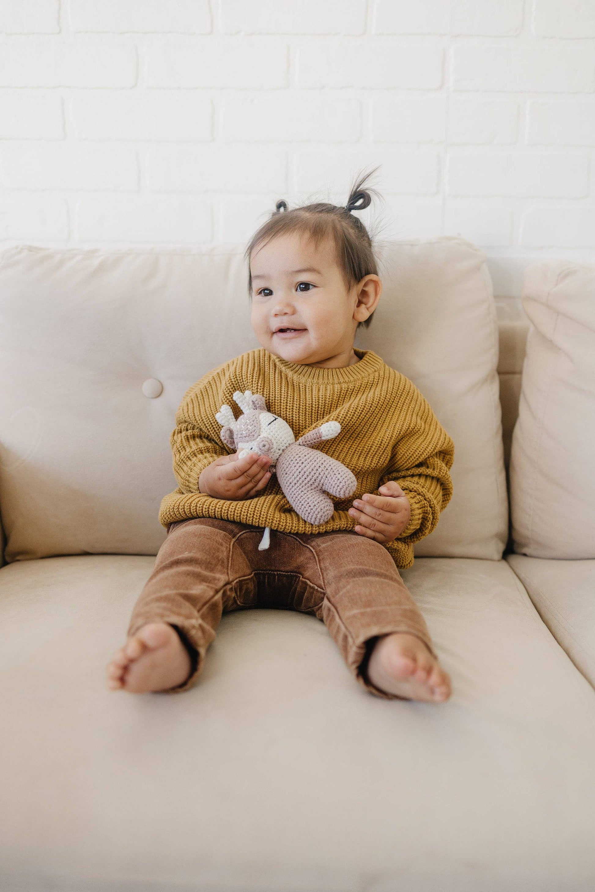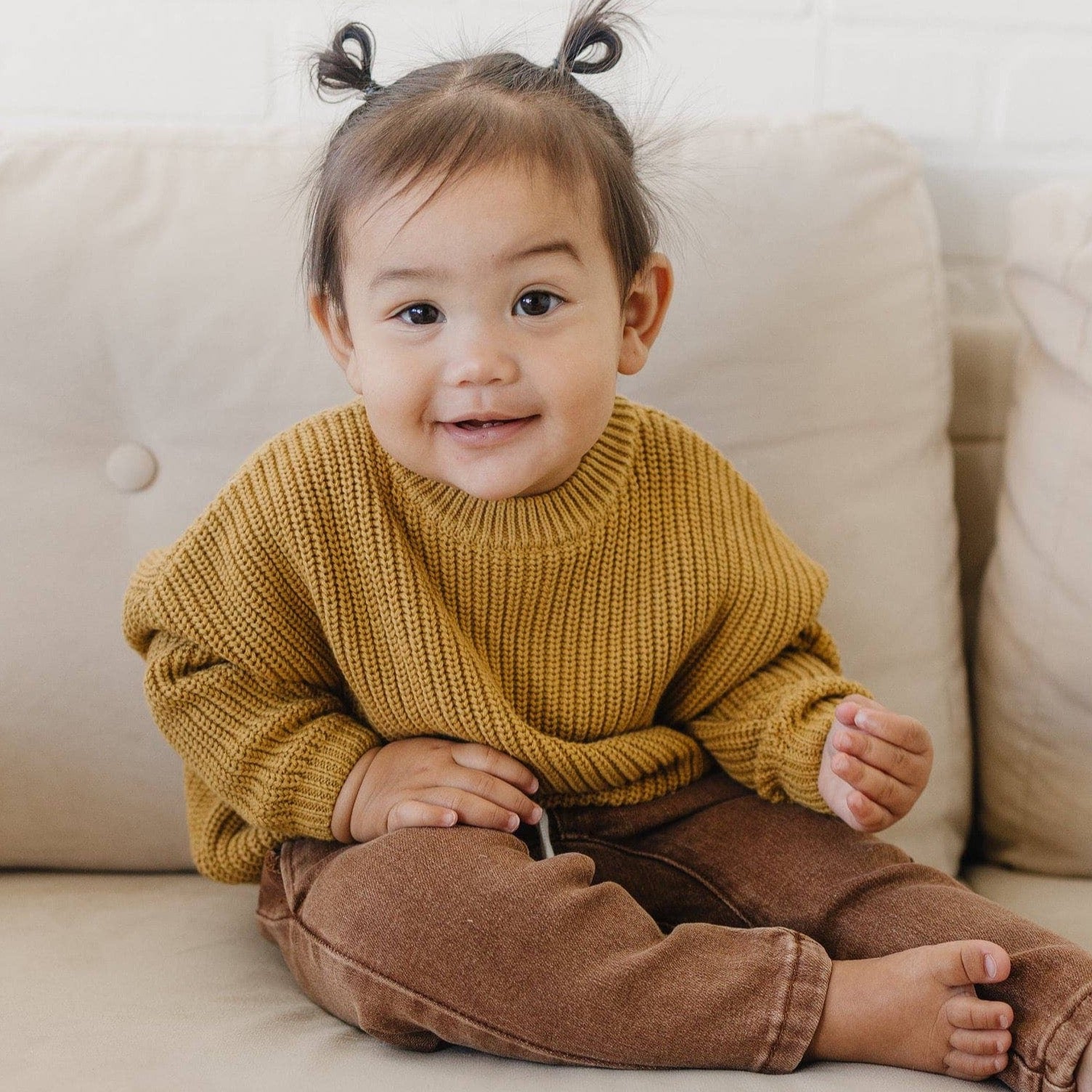 You will be obsessed with this oversized chunky knit sweater for your sweet babies & toddlers. This warm and cozy knit will look great for family photos or days out in the breeze. Perfect to keep in the diaper bag and throw on indoors or as the temperature, inevitably, drops in the evening. Styles easily to dress up leggings for your girls or with denim for your boys. Keep in mind, this style will transition as a great "hand me down" as it is gender neutral and will handle lots of washes.