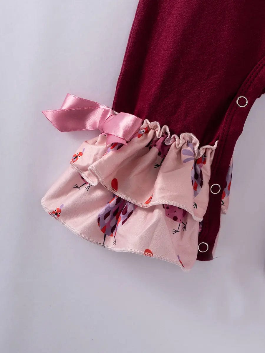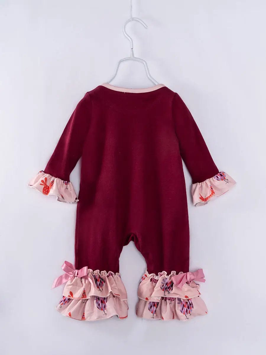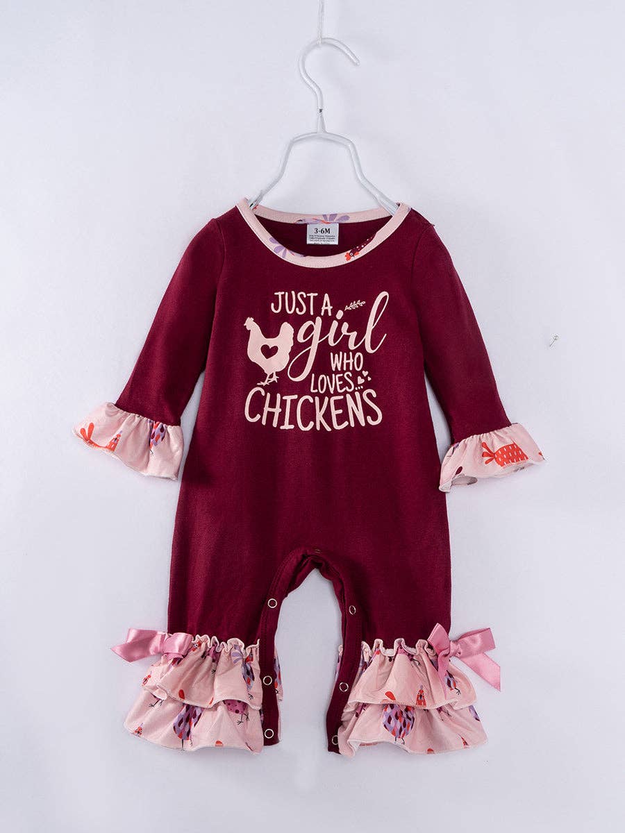 Your little chick-a-dee will look adorable in this ruffle baby girl romper! Crafted from soft cotton and featuring a sweet chicken print, she'll ruffle some feathers in this stylishly snug ensemble. Perfect for playdates or daycare, she'll be the cutest peep in town!
