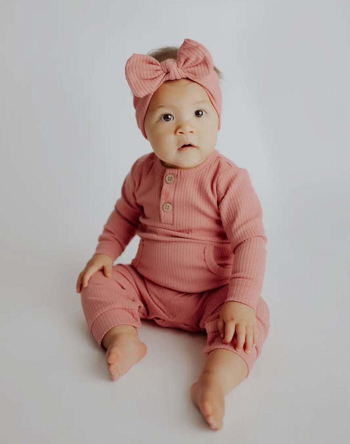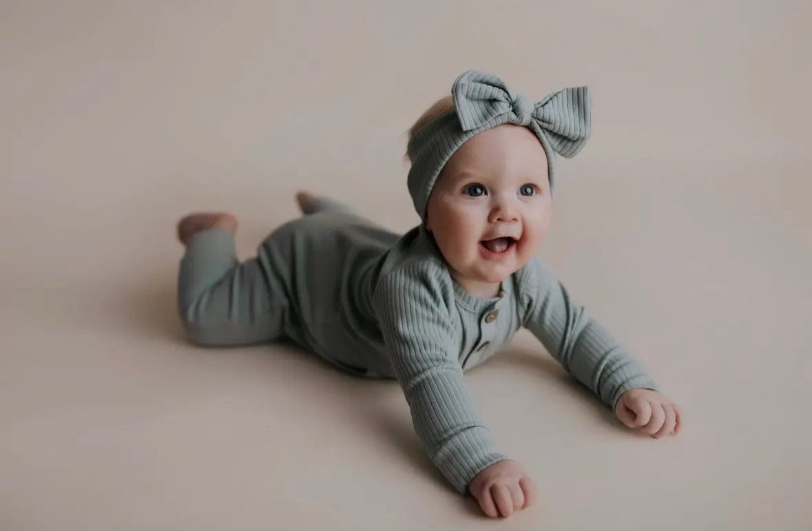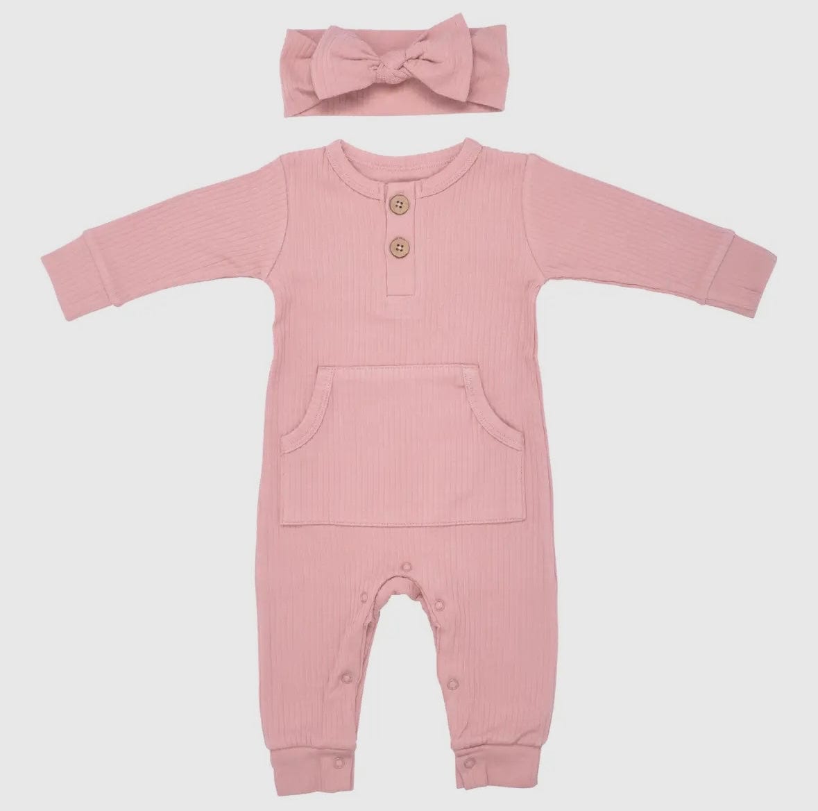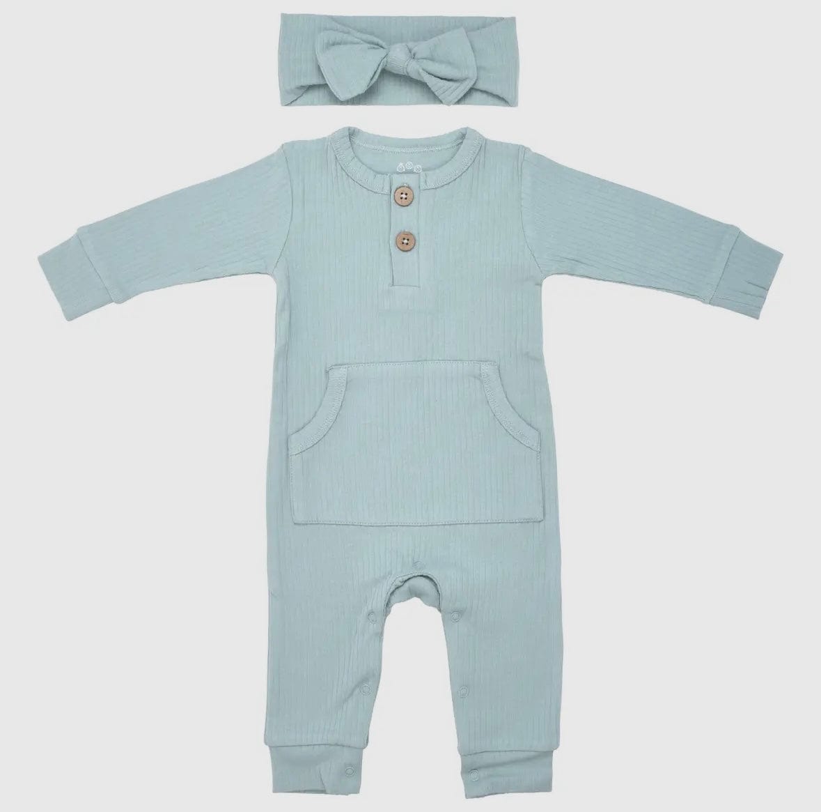 Organic Cotton Ribbed Playsuit with Bow Headband