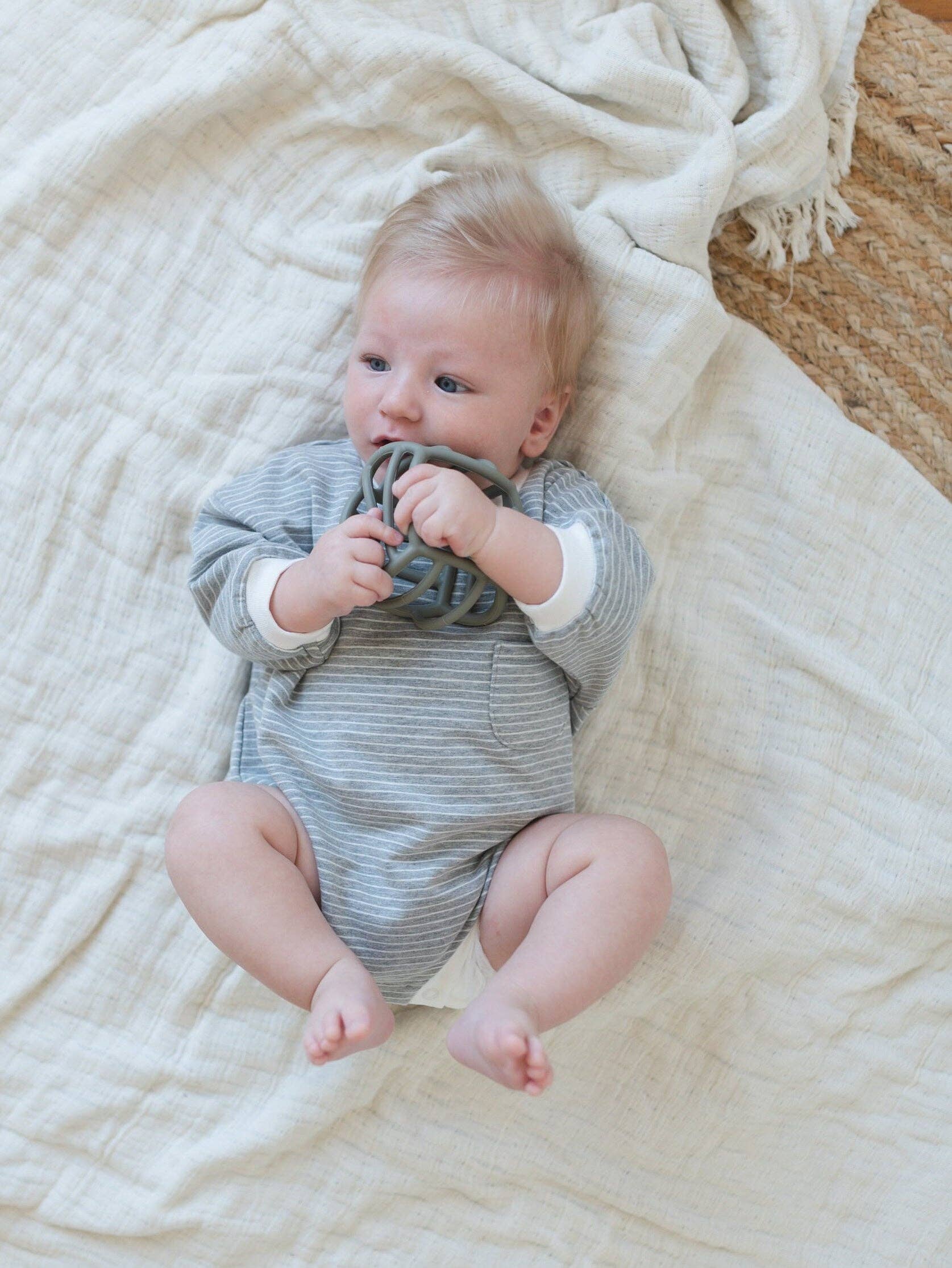 Introducing the Silicone Teether Ball, the ultimate teething solution for your little one. Crafted with care and safety in mind, this teether ball is designed to provide comfort and relief during the teething phase. Measuring approximately 3.6" in diameter, this teether ball is perfectly sized for little hands to grasp and hold. Its pliable nature ensures easy manipulation, allowing your baby to explore and soothe their gums with ease. We prioritize your baby's health, which is why our teether ball is made from high-quality, food-grade silicone. It is free from harmful substances such as BPA, PVC, lead, phthalates, mercury, latex, cadmium, and heavy metals.